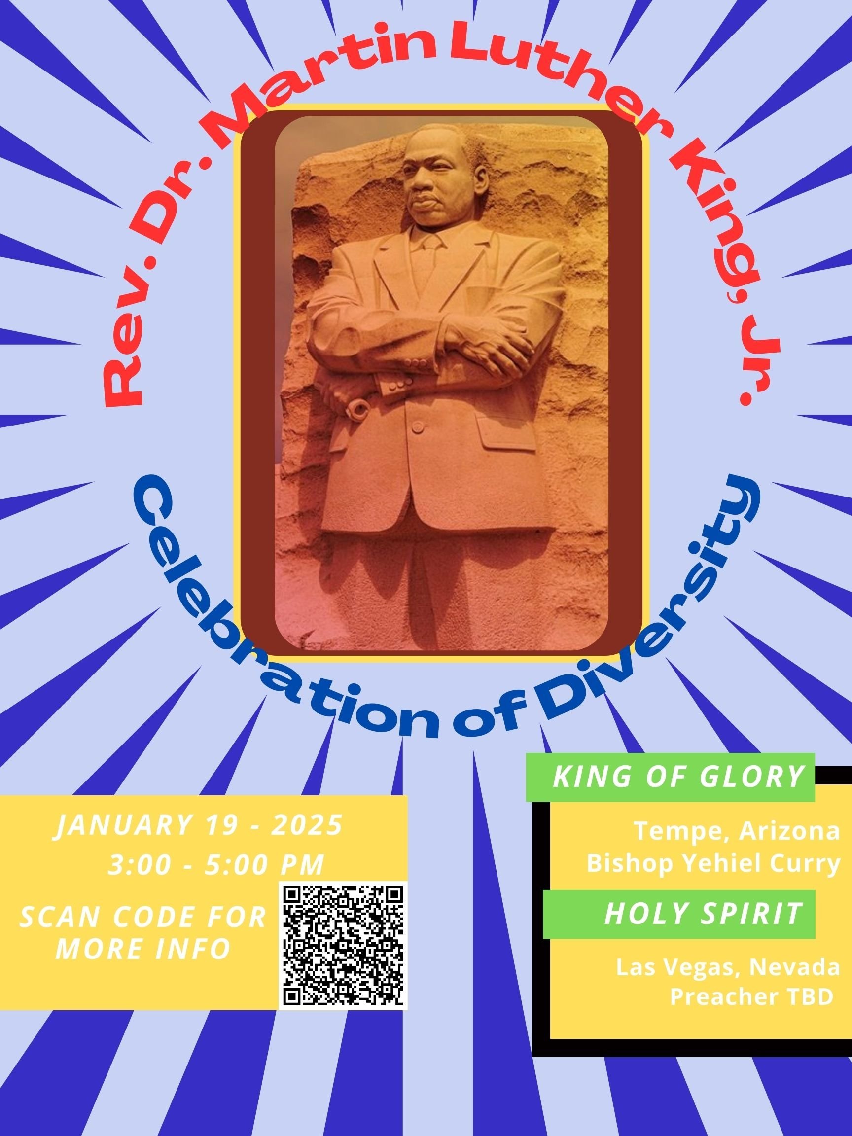 Join the Grand Canyon Synod in honoring the legacy of Dr. Martin Luther King, Jr. at a special Celebration of Diversity event on Sunday, January 19, 2025, from 3-5 pm. This commemorative service will be held at King of Glory Lutheran Church in Tempe, AZ. The event will feature inspiring worship, reflection, and community gathering, with Bishop Yehiel Curry of the Metropolitan Chicago Synod preaching in Tempe.
